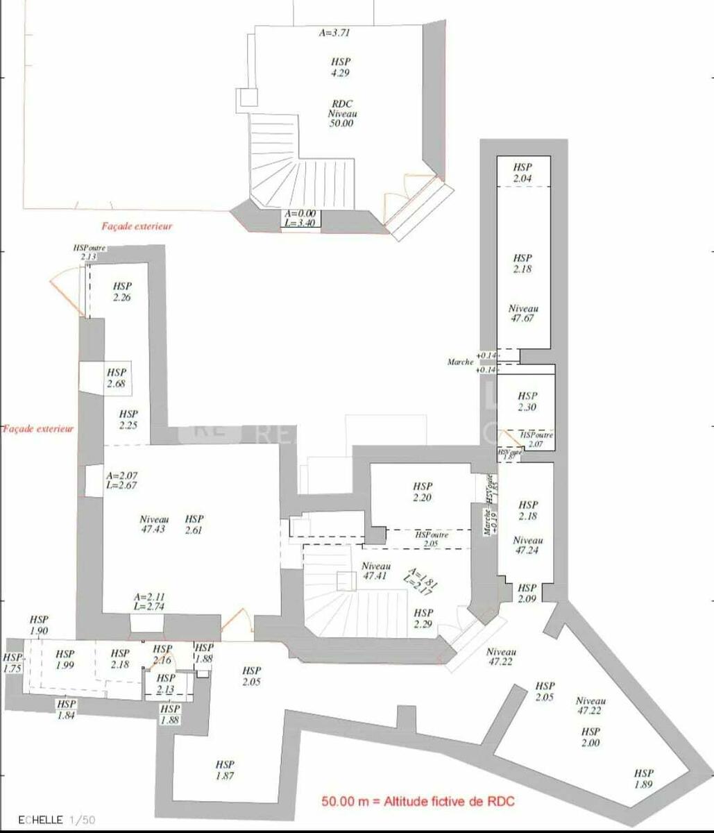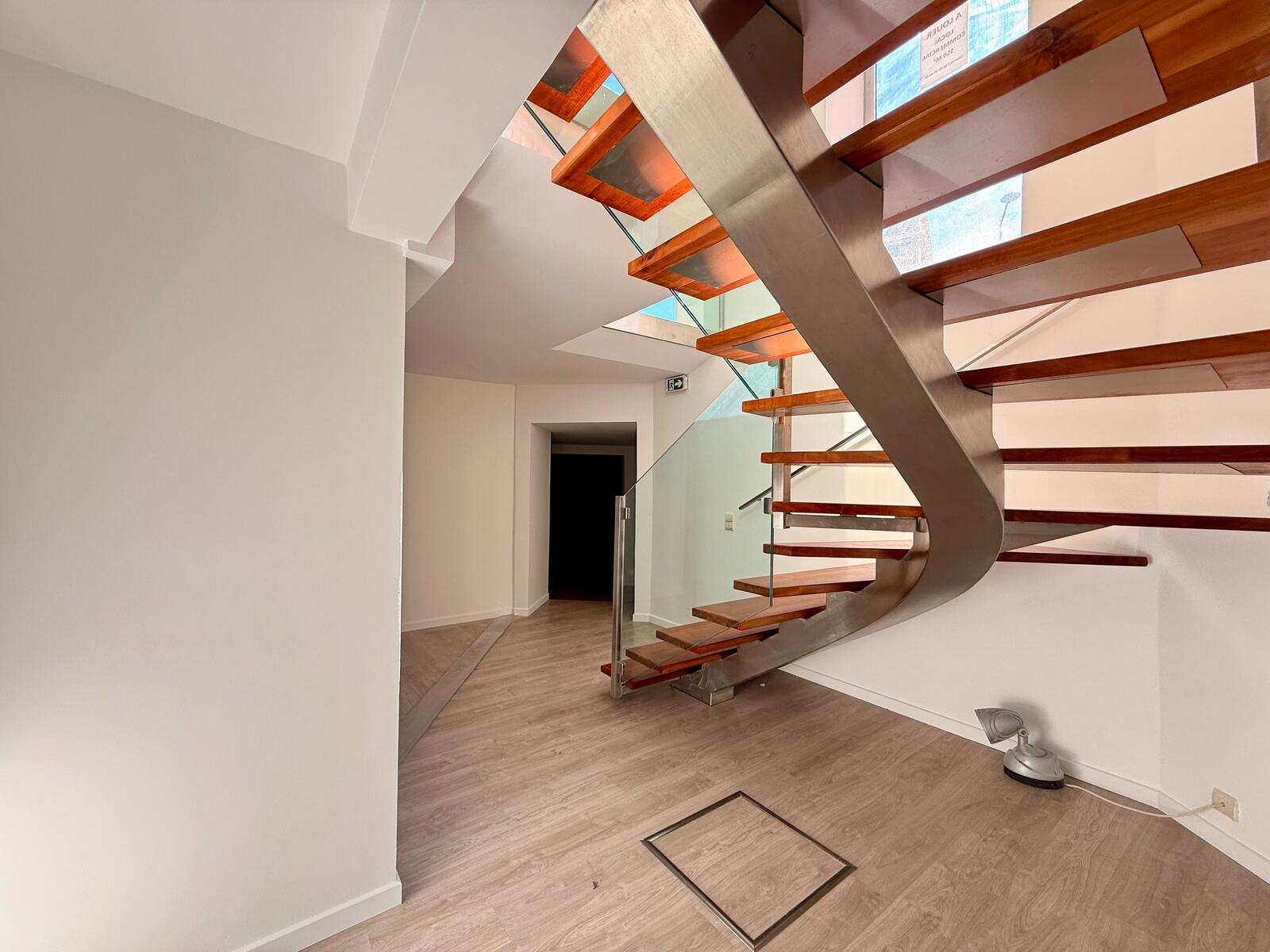 Au niveau inférieur : espaces de vente ou bureaux, coin cuisine équipée en bon état, salle de douche, divers locaux d’archives et sortie de secours.