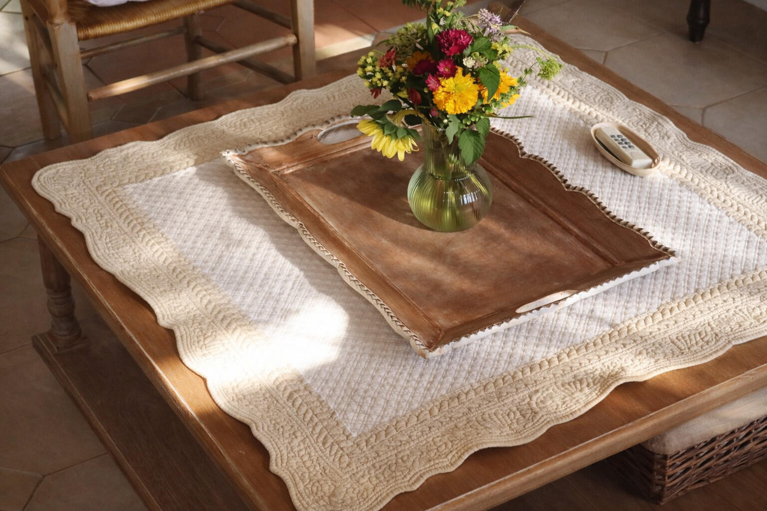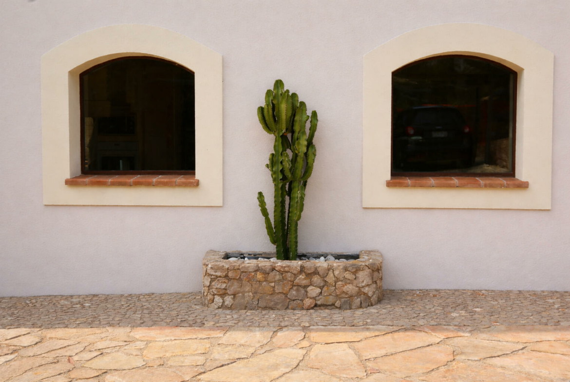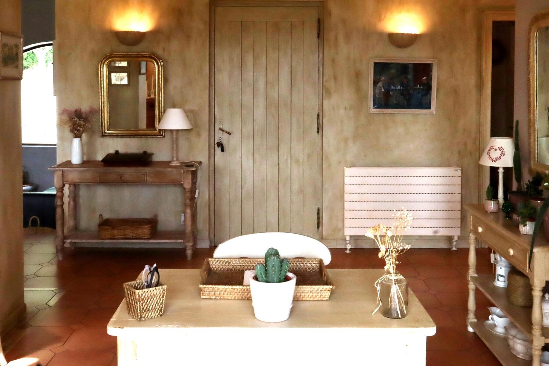 – Un espace de vie extérieur couvert, bordé d’oliviers.