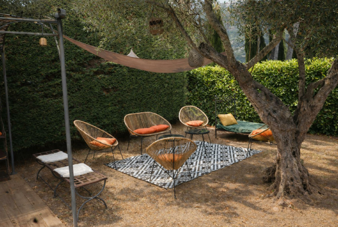 – En contrebas, un terrain de pétanque complète cet environnement méditerranéen, ponctué de lavandes et d’oliviers.
