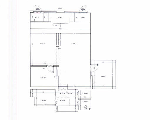 It consists of a large main room, two side rooms at the back, a laundry room, a storage space, a large storage cupboard and a toilet.